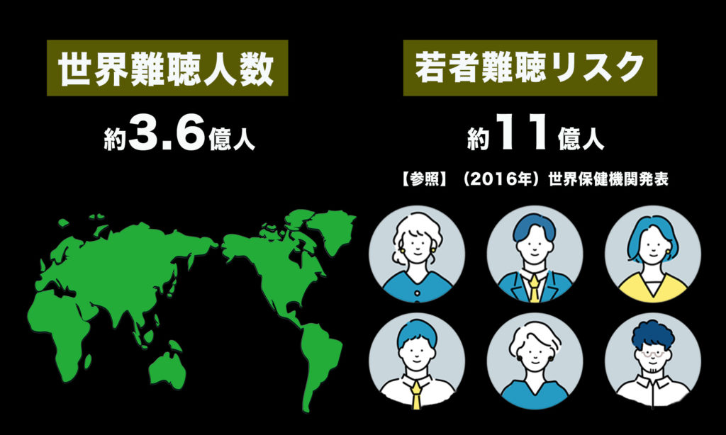 スマートフォンや音楽ストリーミングの普及により、聴覚リスクは先進国/新興国を問わず拡大しており、「聴こえを守るイヤホン」への需要は世界的に高まっています。